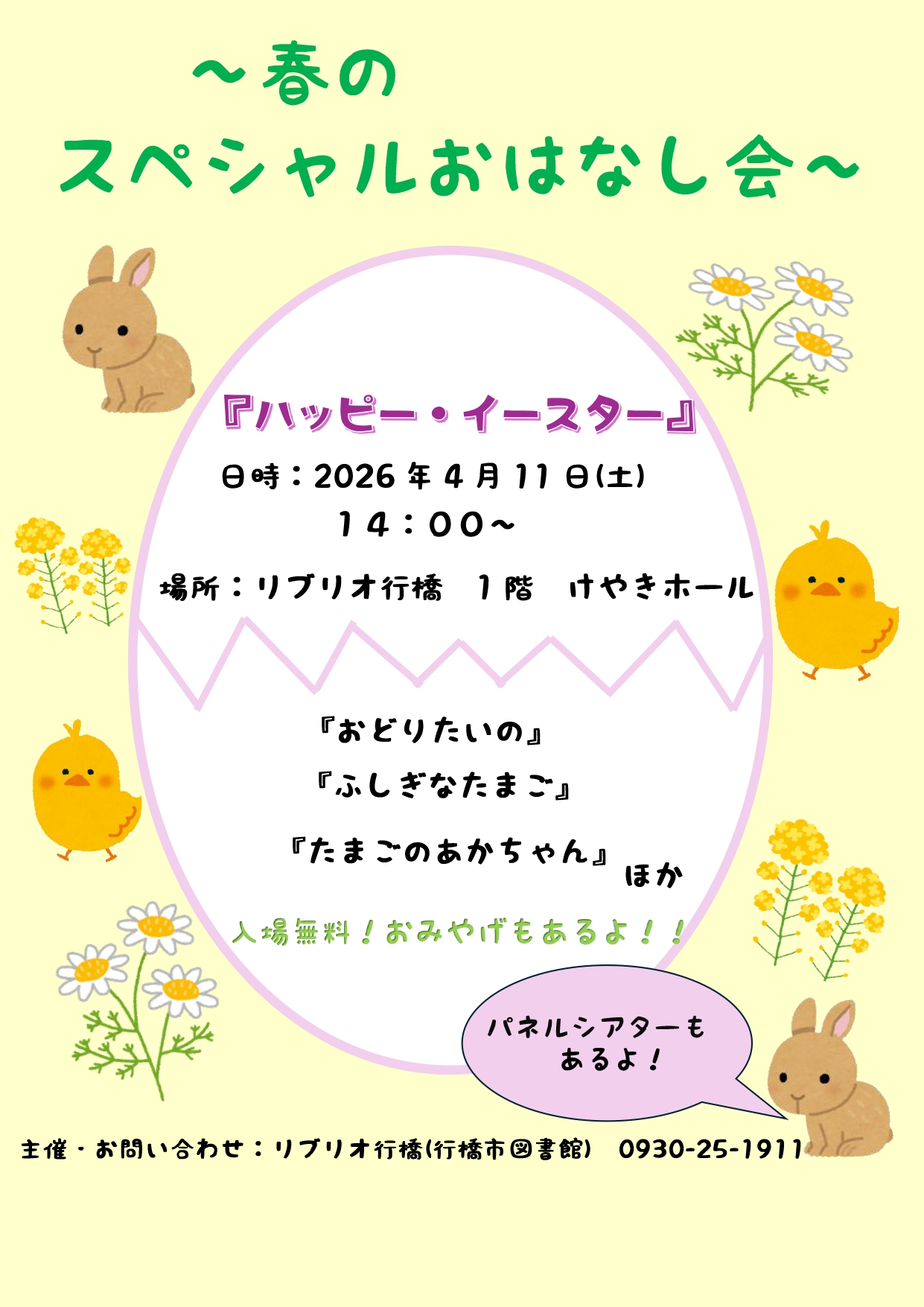 あったかい春がやってきました!みんな「イースター」って知ってる? イースターに関係あるうさぎとたまごに関する絵本を読むよ!