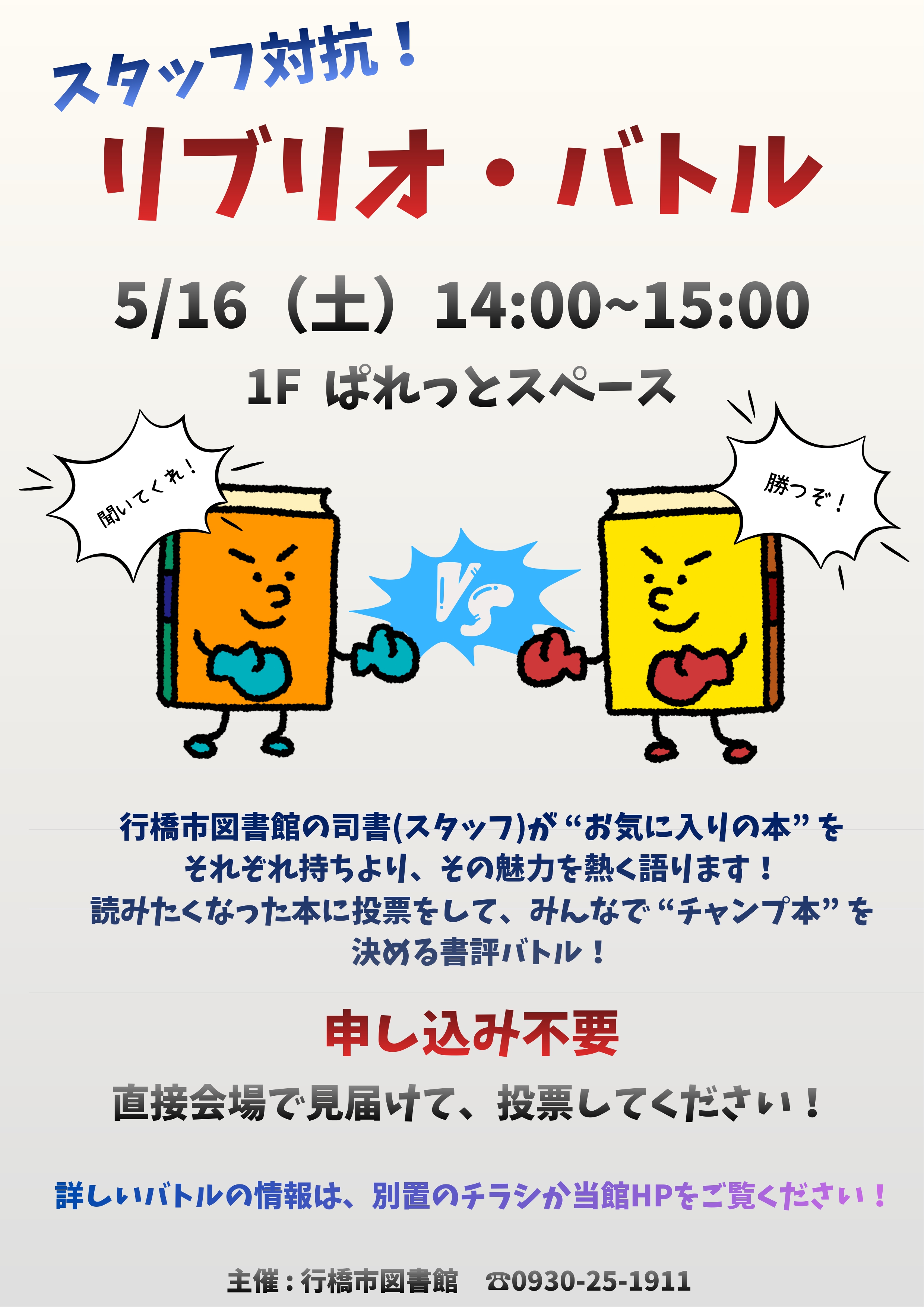 これまで4回に渡って開催してきたリブリオ・バトルを、行橋市図書館スタッフで行います!