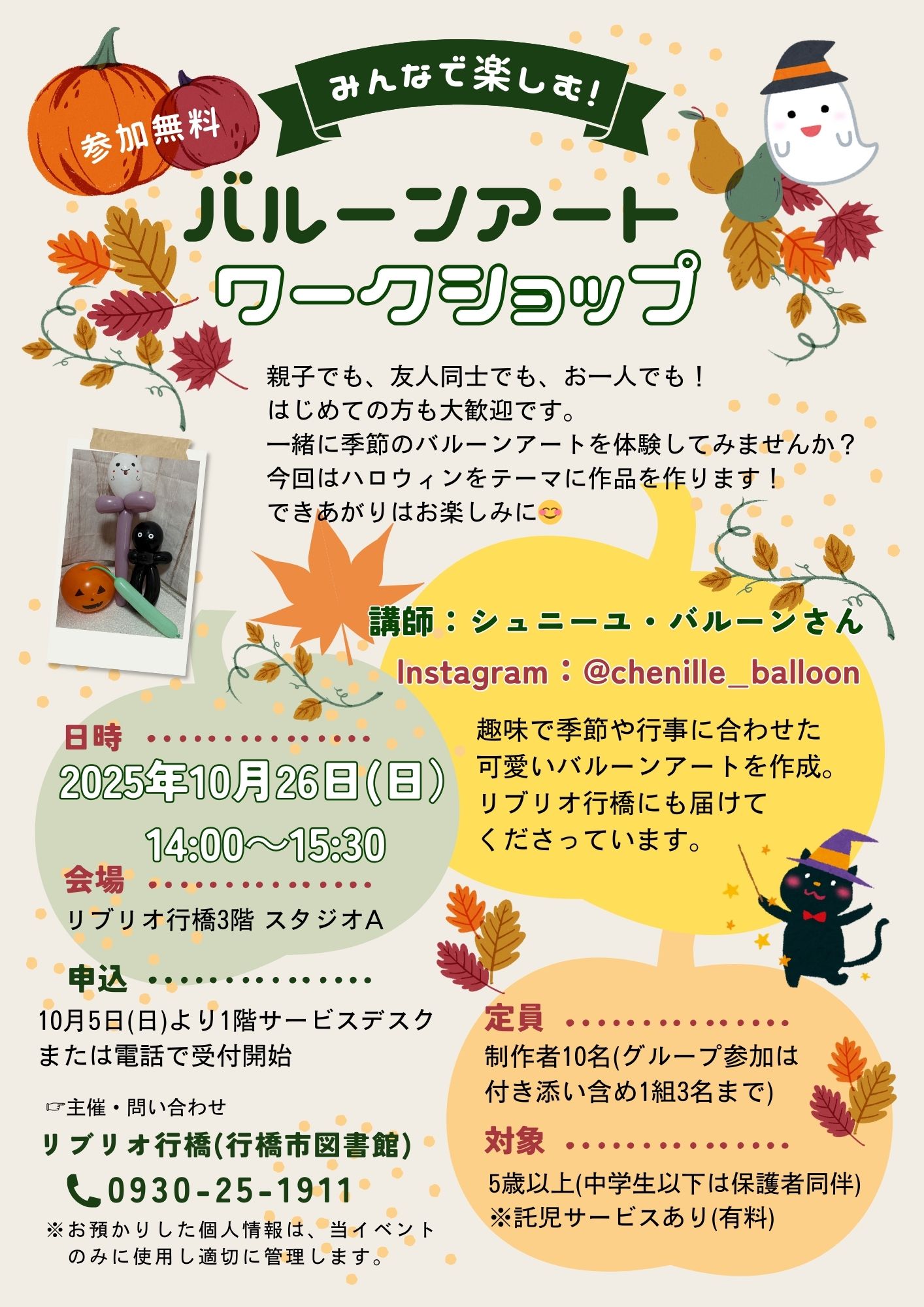 毎回好評のバルーンアート・ワークショップを開催します。